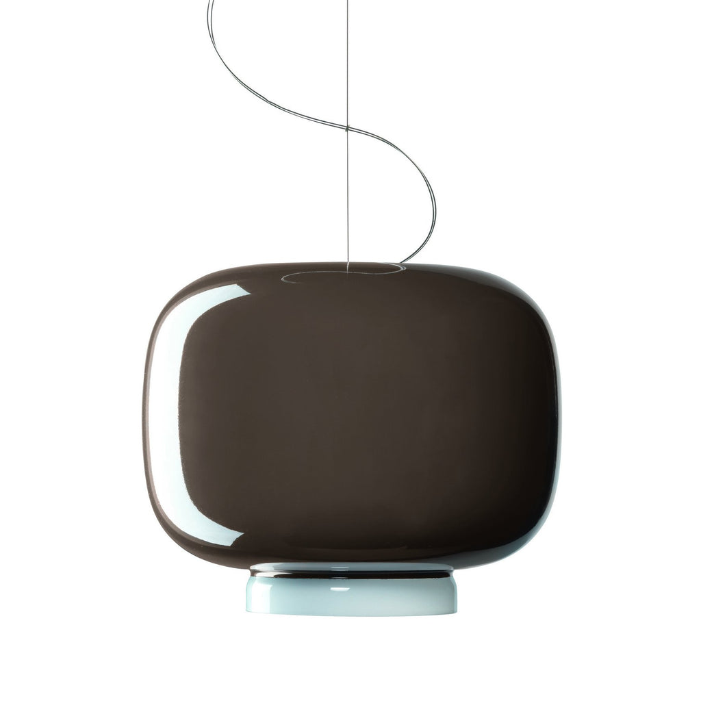 Chouchin is a family of suspended lamps that takes its name from traditional Japanese paper and bamboo lanterns used as light and bright signs outside restaurants and bars, or as lucky charms outside homes. Their typical shapes have been reinterpreted in a pure contemporary style, using an age-old material: blown glass that has been painted to make it completely opaque and glossy. The result combines a warm coloring, textured and precious, with a luminous collar that projects an intense, direct beam of light downwards.