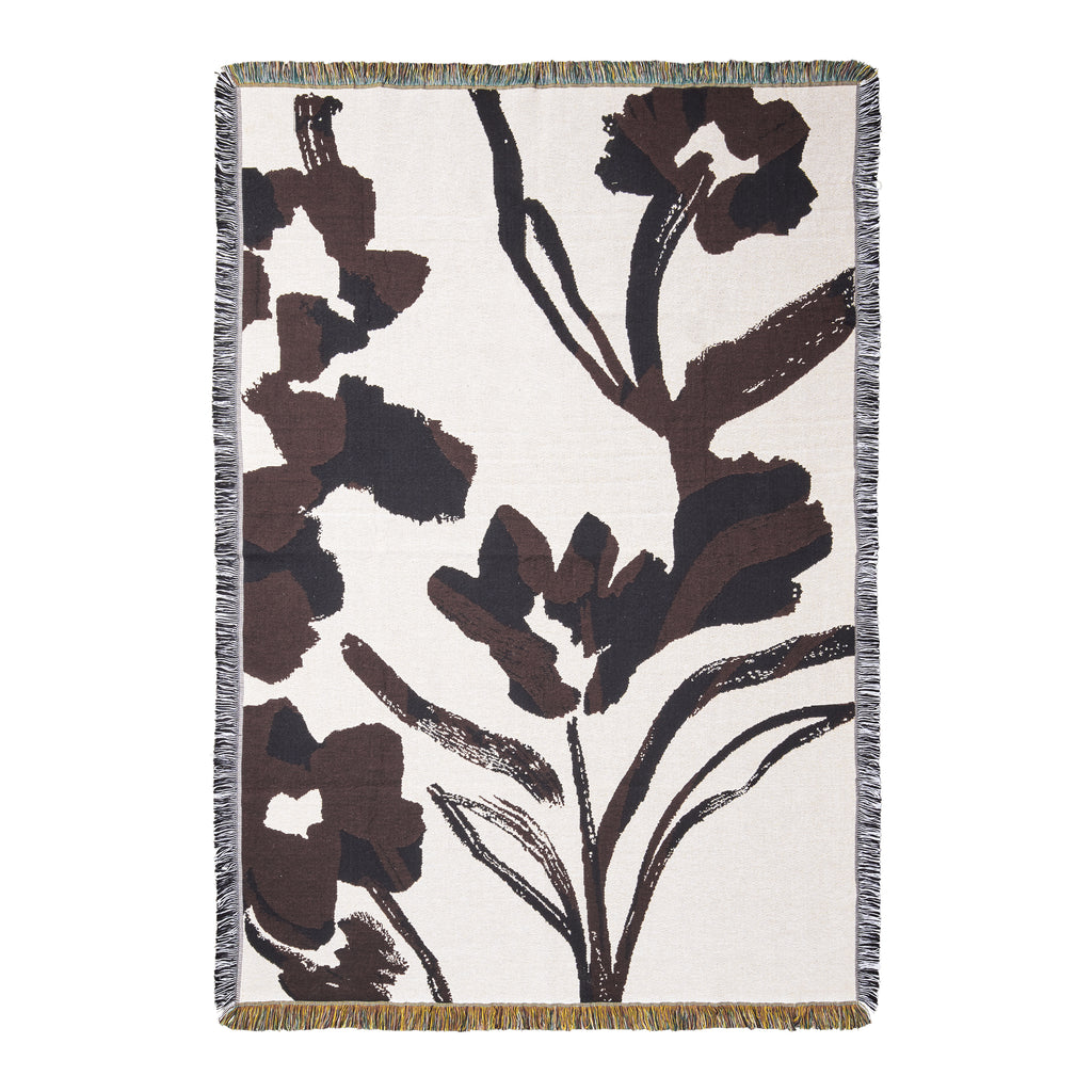 A piece of woven artwork for your home, the Cilla Tapestry Blanket from Ferm Living is both functional and expressive. Woven from GOTS-certified organic cotton using traditional tapestry techniques, this beautiful blanket features a hand-painted floral motif that captures the fluidity and softness of botanical forms. The intricate detail and tactile depth are enhanced by a decorative fringed edge. Perfect for draping over a sofa for a touch of warmth or hanging on the wall as a statement piece, it brings a soft, artistic feel to any interior.