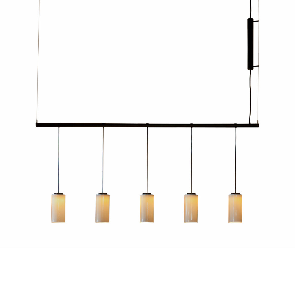 The Cirio Lineal Linear Pendant Light from Santa & Cole is a luxurious statement piece, perfect for adding a touch of elegance to any space. This stylized lighting fixture features five cylindrical porcelain, glass, or brass shades expertly arranged in a symmetrical line creating a stunning display of light without extraneous detail. The HeadHat system uses LED modules that provide energy-efficient light, illuminating any space with a subtle radiance.