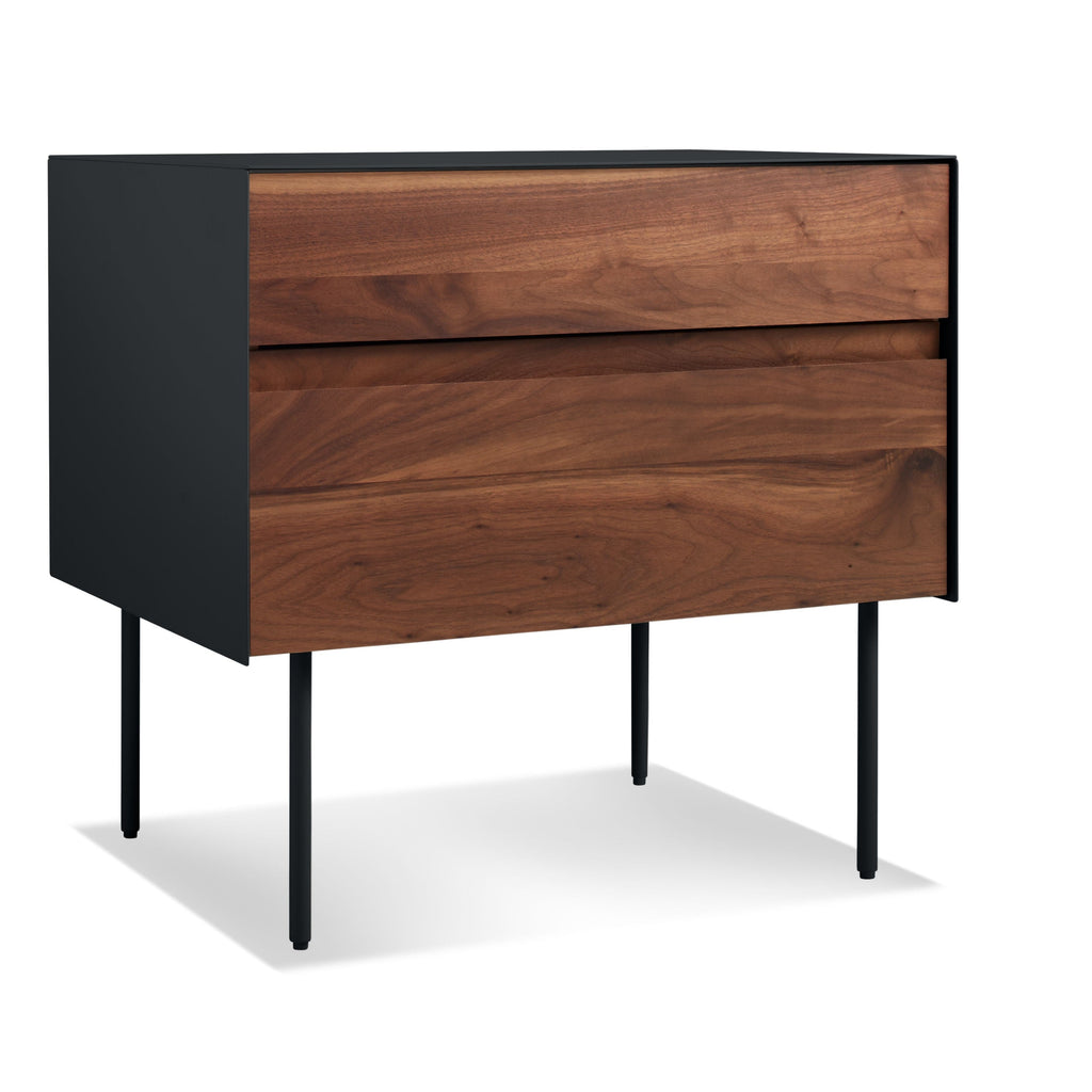 A minimalist's dream, the Clad Nightstand from Blu Dot offers clean-lines and quality construction for endless appeal. Showcasing an elegant, geometric design combining the beauty of wood and the durability of steel, this refined modern nightstand features solid wood drawers, neatly encased in a thin powder-coated steel frame. Equipped with soft closure mechanisms on all drawers, neutral finish options elevate Clad's handsome silhouette making it the perfect side piece for any primary suite or guest bedroom.