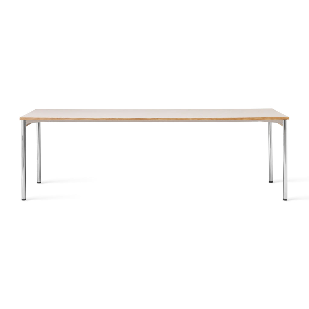 The Co Dining Table from Audo Copenhagen effortlessly enhances dining rooms and professional spaces with its elegant and functional design. Made to last, its solid oak trim and chromed legs add a touch of sophistication, while the option of two sizes and material colors allows for versatility in modern workspaces. Perfectly paired with the Co-Chair collection, this table brings both style and functionality to any setting.