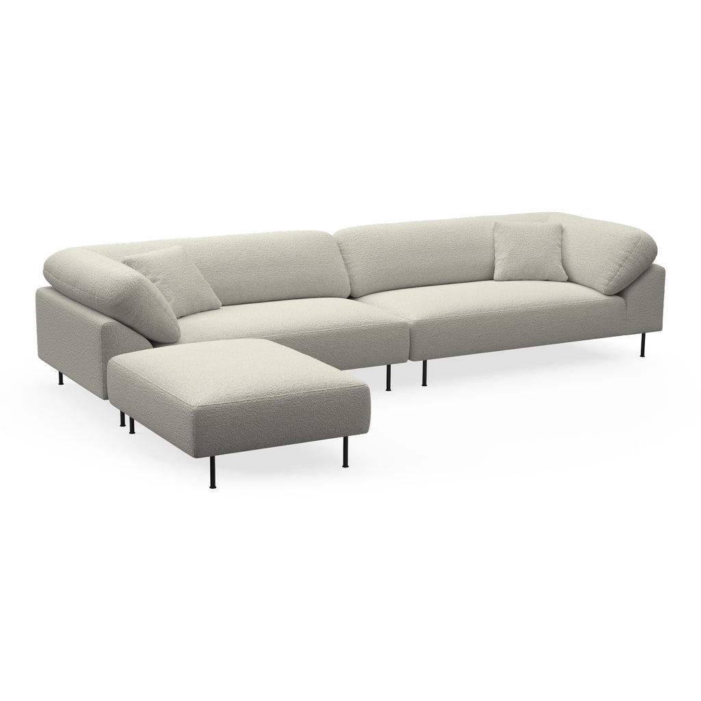 - Includes: 1 x open end left (arm right), 1 x open end right (arm left), 1 x ottoman and 2 x throw pillows in the same fabric as the sofa
