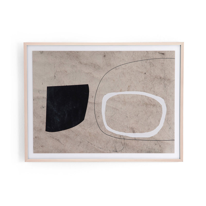 A piece by artist and graphic designer Dan Hobday, "Comfort" is inspired by the modern, minimalist coastal landscapes of his hometown in Devon, England. This museum-quality print is presented on matte watercolor paper and framed within natural American maple for a clean, sophisticated look. Handmade in Austin, Texas.