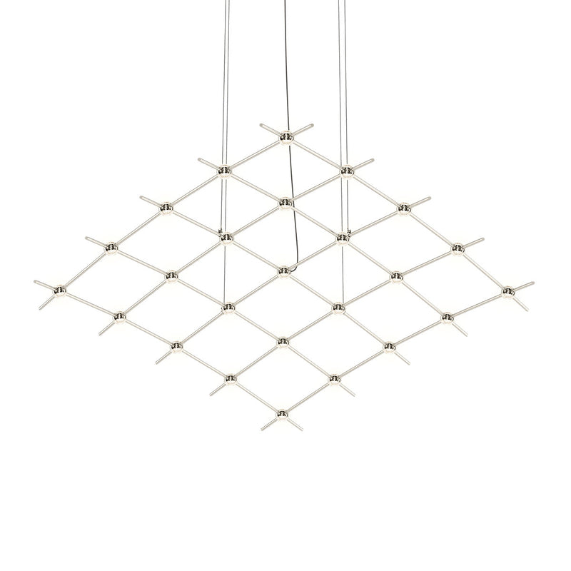 Experience the beauty and wonder of the night sky with the Constellation Aquarius Medius Pendant Light. Its stunning design features interconnected LED light hubs and connectors, creating a celestial-like curve and adding a touch of sculptural drama to your space. Create an instant interior centerpiece with its uniform brightness and innovative design, perfect for high-ceiling entryways, living rooms, and dining spaces.