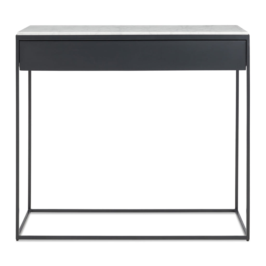 The Construct 1 Drawer Console Table from Blue Dot is a versatile piece that combines elegant design with practical functionality. Made of powder-coated steel and featuring a gorgeous Carrara marble top, this console table is the perfect addition to any space. Its single drawer adds convenient storage, making it a perfect choice for a desk, accent table, or as part of an entryway vignette.