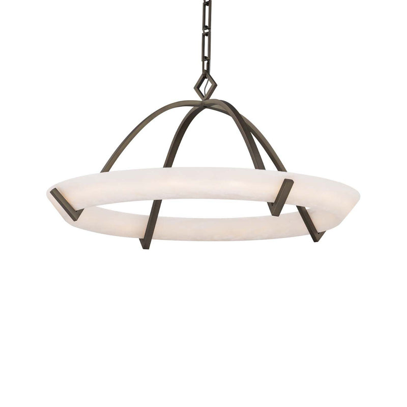 Like a precious jewel for your ceiling, the Copa LED Pendant Light from Modern Forms is a stunning showcase of natural Spanish alabaster. This elegant pendant features a beautiful ring of solid alabaster, its distinctive natural veining making each piece a one-of-a-kind work of art. Gracefully cradled by sleek metal arms, the stone radiates a rich and beautifully patterned glow. A fusion of organic material and modern form, it’s a breathtaking centerpiece for any dining room or entryway.