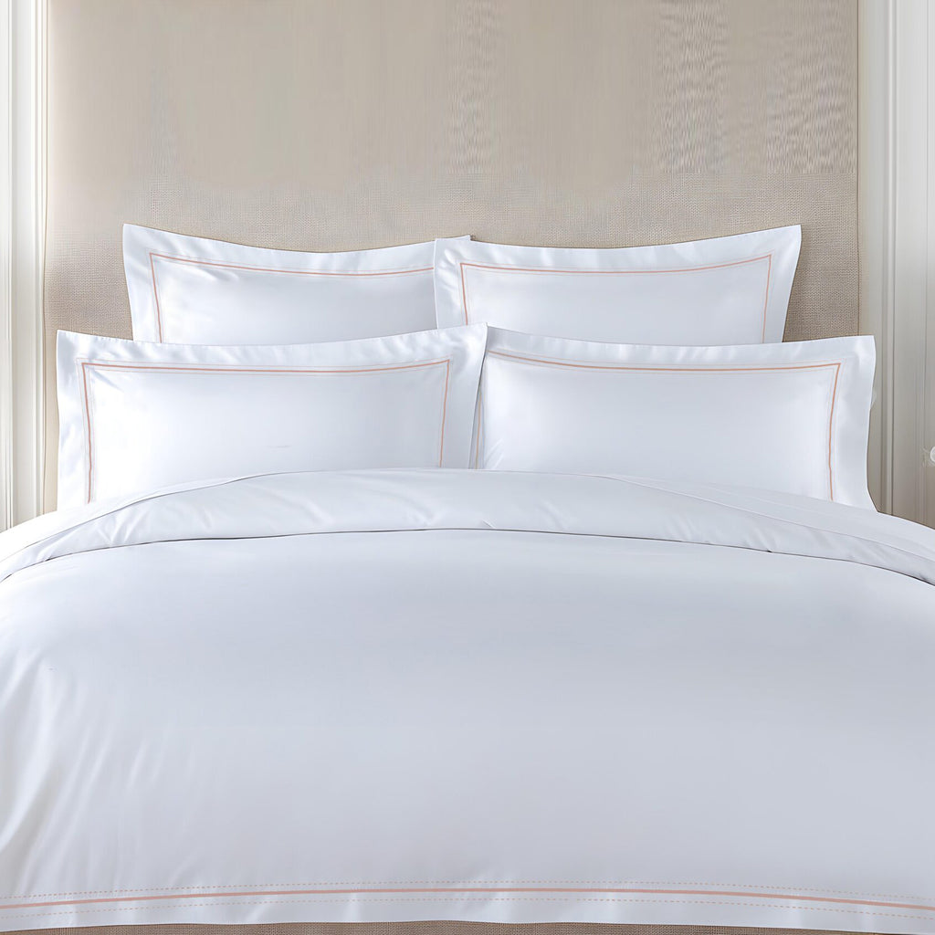 Elevate your sleep space with the luxurious Cord and Heimstich Top Sheet from The Lino. Its fine craftsmanship and timeless finish, featuring intricate cord embroidery and hemstitch detailing, adds an elegant touch to any bedroom. Made from 100% Egyptian cotton with a 400-thread count percale weave, experience the ultimate comfort and sophistication in your sleep.