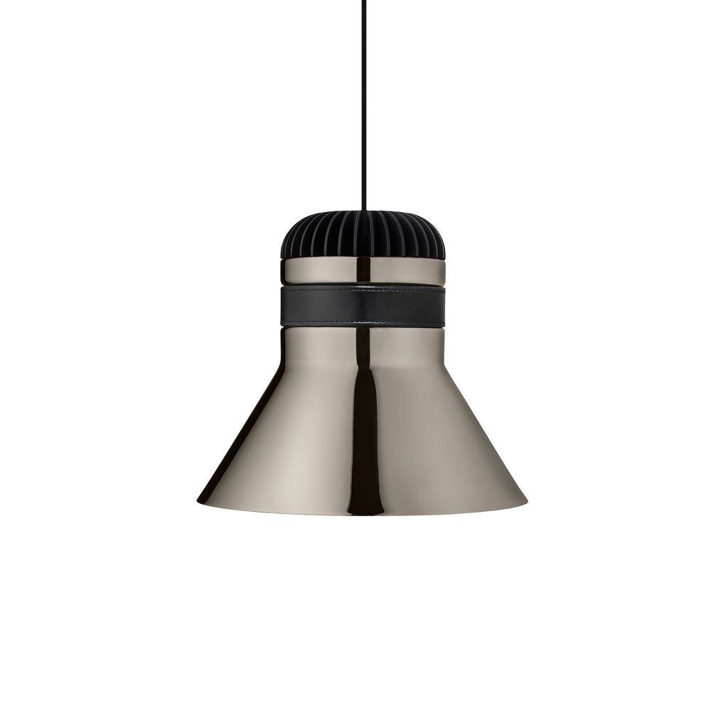 Illuminate your space in sophisticated style with the Cordea LED Pendant Light from Masiero. Boasting a bell-shaped metal body and a luxurious leather band, this pendant light is the perfect blend of form and function. Its white frosted glass diffuser creates a soft, warm lighting effect while the golden brass buckle with Masiero logo adds a delightful touch of prestige.
