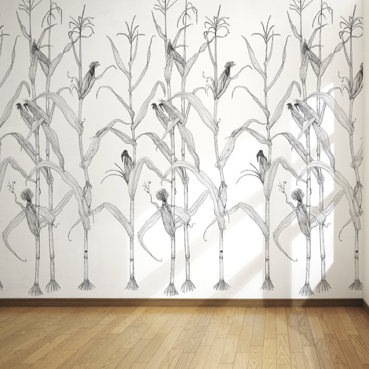 Inspired by and hand drawn from a cornfield in Maryland. Intended to bring peace and spaciousness to a wall by depicting corn stalks in large scale and beauty.