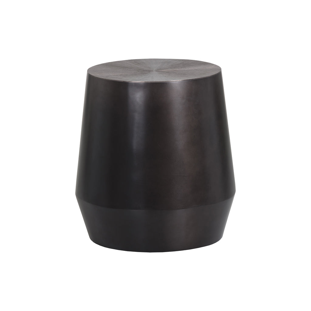 Introduce a globally-inspired aesthetic to your home with the stunning Creed End Table from Sunpan. Featuring a captivating bronzed gunmetal finish, hand-etched and hand-hammered top, and a drum style base. This contemporary piece showcases refined craftsmanship from skilled local artisans, resulting in unique imperfections that add to its one-of-a-kind charm. Elevate any living, lounge, or office space with this exquisite side table.