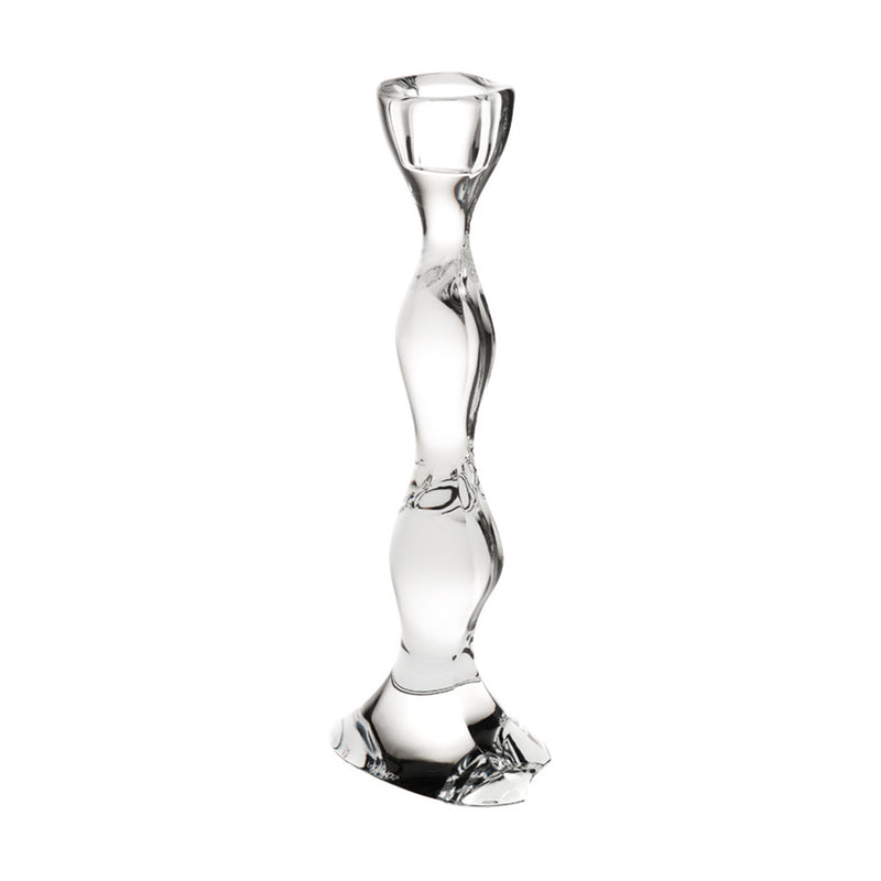 A stunning crescendo of light and form, this contemporary Candlestick from Vista Alegre is a modern, sculptural statement piece. Made in Portugal from brilliant lead crystal, this elegant candlestick is inspired by the gradual increase of a musical crescendo. Its unique form is composed of a series of stacked, graduated discs that create a sense of dynamic, upward movement. A fusion of artistic inspiration and modern craftsmanship, it brings a sophisticated, radiant beauty to any home.