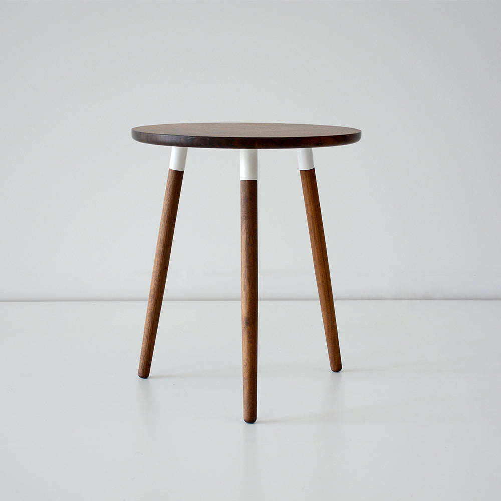 A further iteration of the Crescenttown side table and an ongoing dialogue between wood and metal. The coffee table gains a fourth as the surface moves toward the ground and widens in diameter, ensuring a sense of balance and integrity.