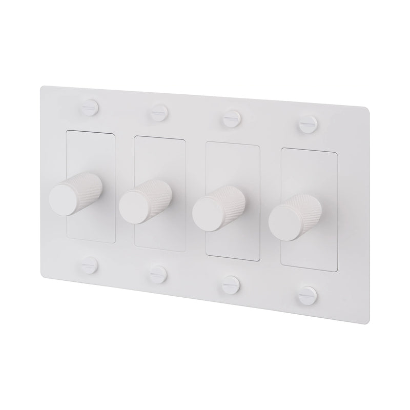 A tactile dimmer switch that transforms an everyday detail, the Cross Dimmer Switch from Buster + Punch is a statement of industrial elegance. This dimmer is defined by its solid metal knob, which is precision-machined with the brand's signature, diamond-cut, cross-knurl pattern, adding a sophisticated hardware touch to your wall.