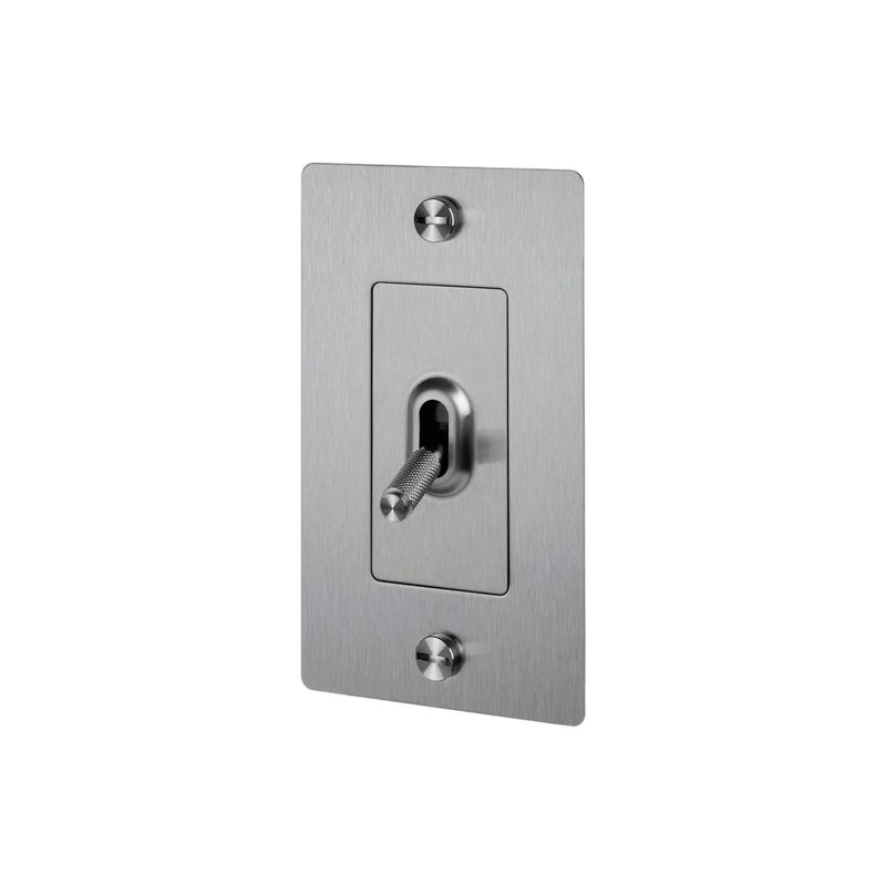 Elevate your light switch with the Cross Toggle Switch from Buster + Punch. This switch is defined by its solid metal toggle arm, which features the brand's signature, diamond-cut, cross-knurl pattern, adding a refined industrial touch and satisfying tactile detail to your wall.