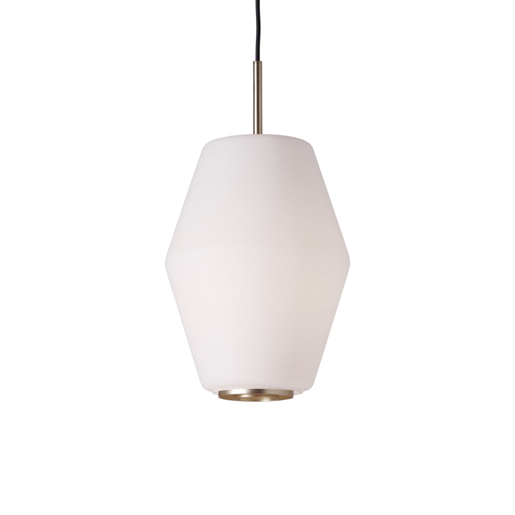 2016 marked the centenary of Birger Dahl’s birth, which Northern commemorated with the launch of this timeless glass pendant. Dahl designed the lamp in 1956 and installed it in the renovated Norwegian Parliament building two years later. Although Dahl is a classic mid-century design, its minimal form and smooth, unembellished surfaces still have a contemporary appearance today. The shade is made from mouth-blown glass and etched by a surface treatment that creates a smooth matte finish. Dahl’s metal parts are white, dark grey or made in matte brass. The shade attaches to a metal disc at the top and makes space for a pair of concentric rings to slot into the opening down below. The pendant has the same understated features that characterise Dokka and Birdy – two other classic Birger Dahl designs also re-introduced by Northern.