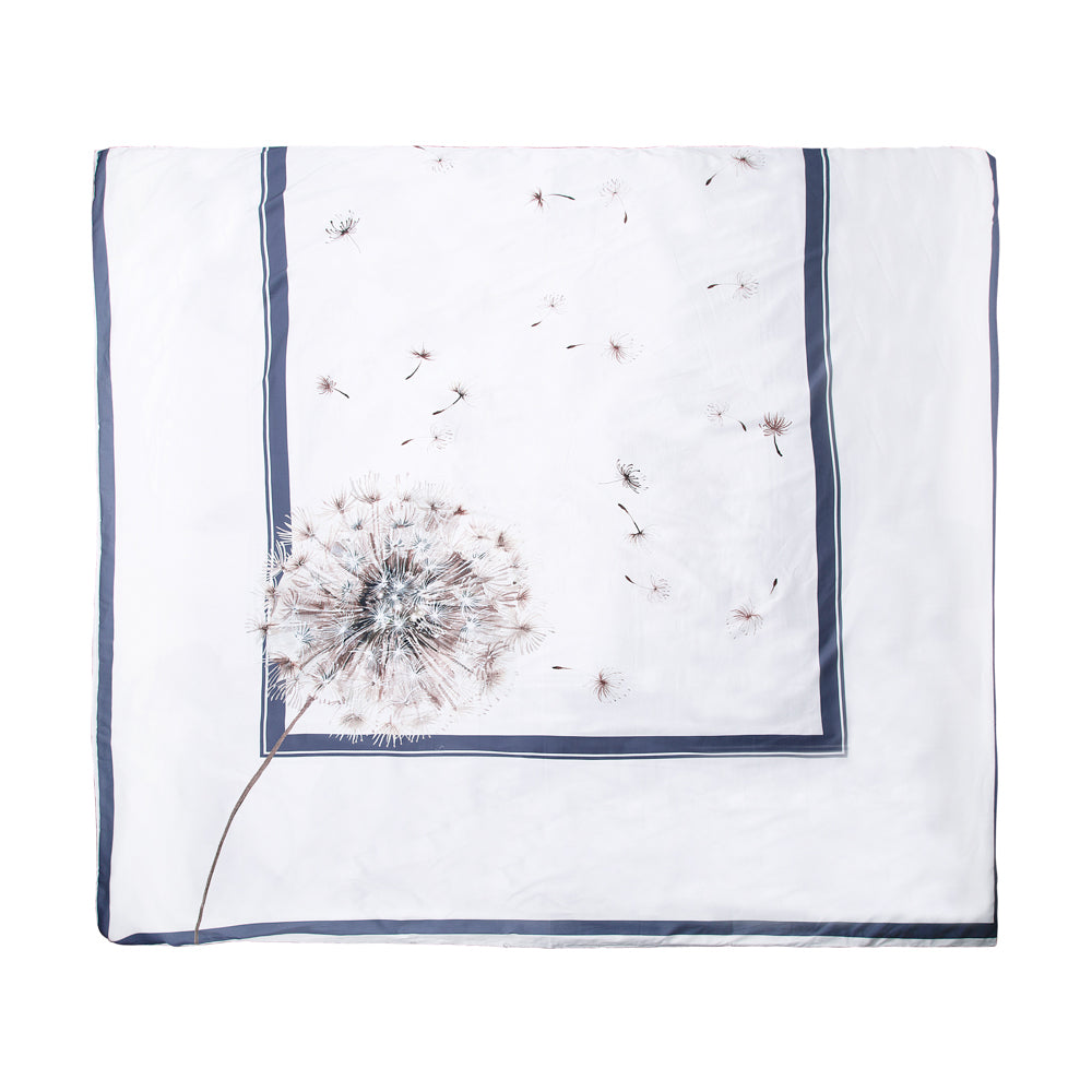Transform your bedroom into a dreamy oasis with the Dandelion Duvet Cover from The Lino. Made with luxurious cotton sateen, this duvet cover features a deconstructed dandelion design and navy printed lines for a serene and peaceful vibe. Indulge in ultimate comfort and elegance with this must-have bedroom essential.