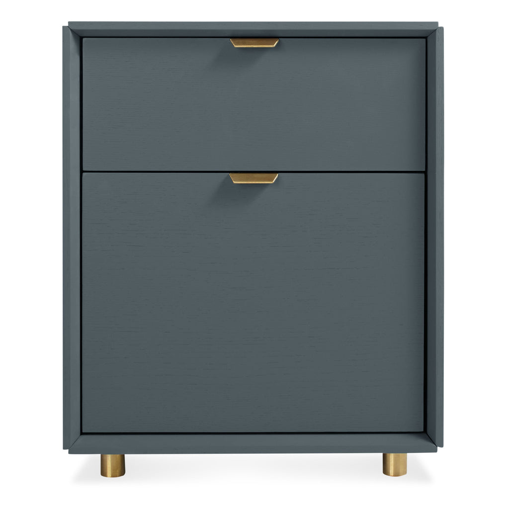 The Dang File Pedestal from Blu Dot makes a striking storage addition to any home office or workspace. This powder coated steel filing cabinet boasts a refined profile and gleaming brass detailing that injects a spot of workspace panache, while a range of elegant Blu Dot colors are primed to enliven any working environment. Featuring two spacious drawers perfect for holding all matters of office supplies, this storage solution pairs well with other Blu Dot office furniture including the Desk 51.