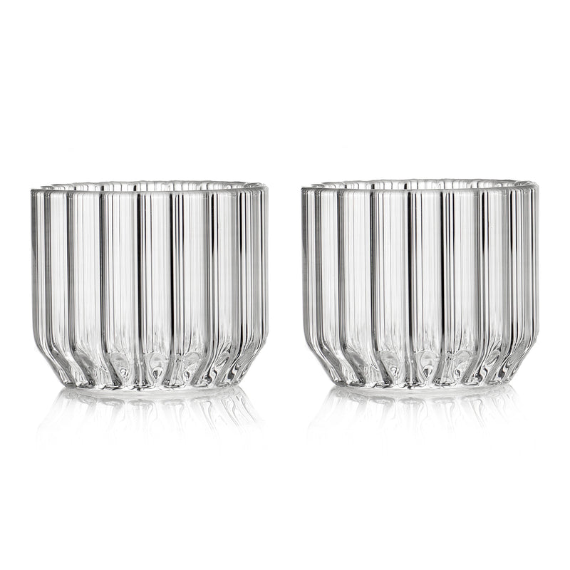 Each piece is handcrafted by master glassblowers of fluted Borosilicate glass allowing for thermal resistance for a range of hot and cold applications. The collection is oven, microwave, and dishwasher safe.