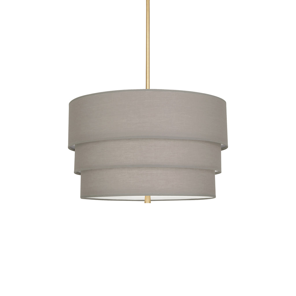 The Decker Drum Pendant Light from Robert Abbey elevates any room with its layered, elegant design. Featuring multiple soft fabric drum shades paired with a white acrylic diffuser, it delivers a warm, glare-free glow that gently illuminates the space below. Suspended gracefully from a slim down rod, this pendant combines transitional style with refined craftsmanship to create a soothing, sophisticated ambiance.