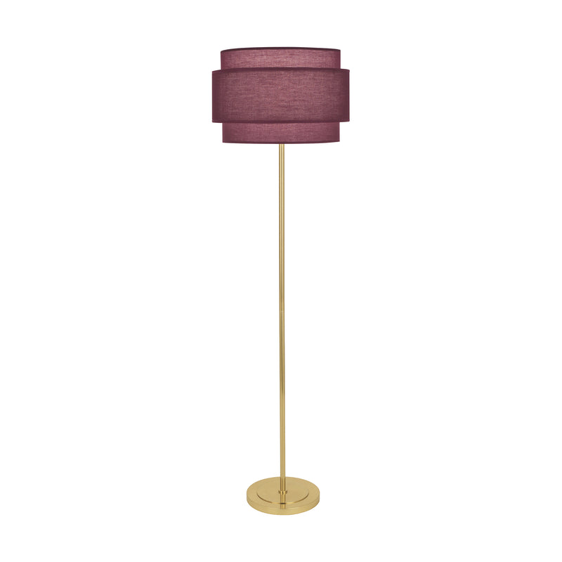 The Decker Floor Lamp from Robert Abbey embodies simple refinement, elevating your space with its sleek metal base and slender stem. Topped with nested fabric shades, it filters warm incandescent light softly, directing illumination both upward and downward to create a balanced, inviting glow. This elegant and minimal design sets a serene, sophisticated ambiance, seamlessly blending into any décor while enhancing the room’s atmosphere.