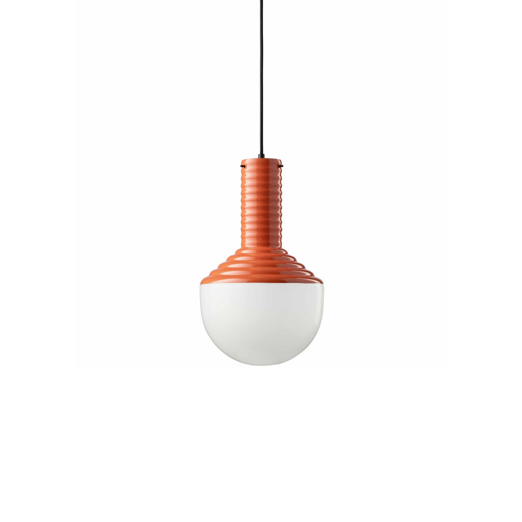 Bring a bit of unique charm to your home with the Deco Selaron Pendant Light from Ferroluce. This elegant pendant has a ridged texture inspired by the iconic outdoor staircase in Rio de Janeiro; its tiered top caps a glass dome, which provides a diffused ambient illumination, adding playful color and texture to your interior.