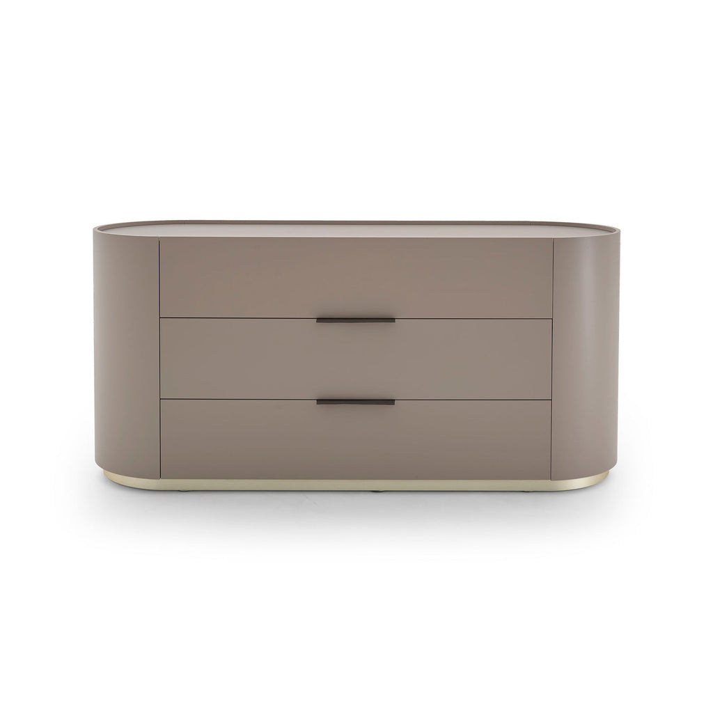 Elevate your bedroom with the Dedalo 3-Drawer Dresser by Pianca. Designed with rounded sides and clean lines, this dresser adds a unique, geometric touch to your space. With three spacious drawers, it offers practical storage while also providing ample space on top to showcase your decor. A staple piece for both style and functionality.