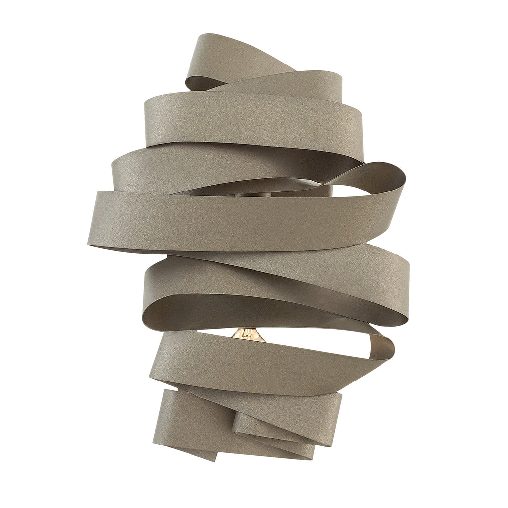 The Delfina collection features a boldly elegant steel ribbon available in Deluxe Gold or Metallic Matte Bronze. This organic shape is both visually intriguing and pleasing as the light flows gently across the overlapping ribbons.