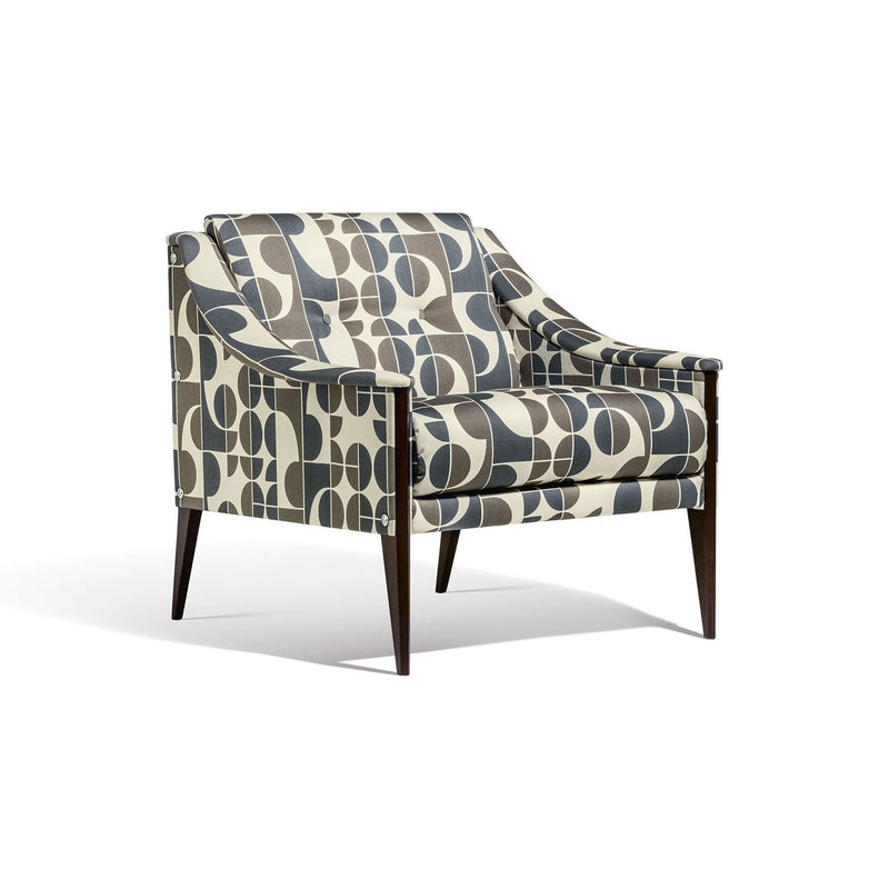 Upholstery: Redevance printed wool satin fabric.