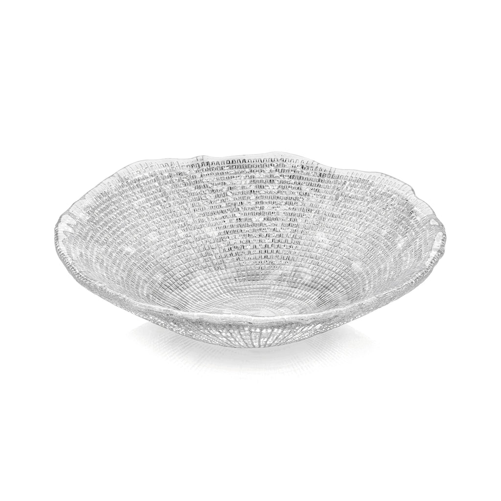 The Diamante Small Bowl from IVV features transparent pressed glass with a unique exterior pattern that creates a glossy, textured surface. Both visually appealing and pleasant to the touch, its versatile design makes it ideal for everyday use as well as more elegant table settings.