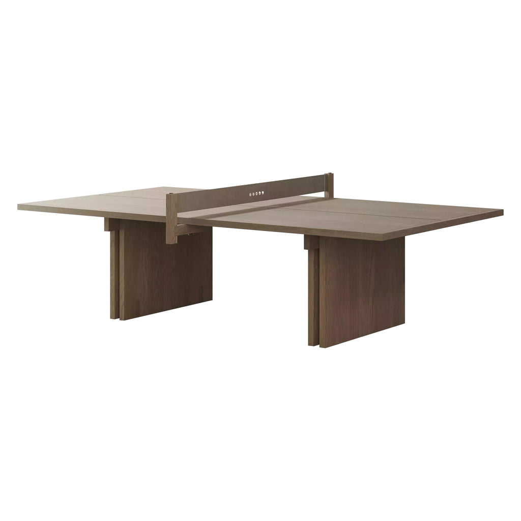 The Dinh Ping Pong Table from District Eight is a masterclass in modern versatility, designed to seamlessly shift from competitive play to a sophisticated gathering point. Crafted with a structured solid oak frame and playing surface, its clean-lined silhouette showcases well-crafted joinery. A beautifully detailed, detachable leather net allows it to instantly convert into a spacious dining or conference table, bringing a sense of refined playfulness and function to any modern interior.