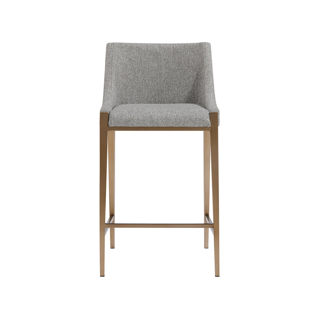 Elevate your dining experience with the Dionne Counter Stool from Sunpan. Its clean, modern design is perfect for any kitchen or dining area. This stunning stool features a textured oatmeal fabric and antique brass finished legs for a touch of luxury and sophistication. Enjoy comfort and style with this elegant addition to your home.