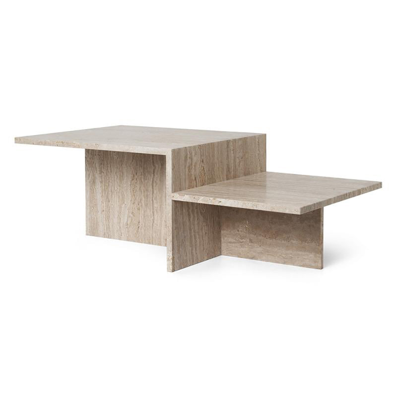 Rooted in Japanese minimalism, the clean lines of the Distinct Coffee Table from Ferm Living offer endless storage and display possibilities. Its minimalist design showcases the intricate structure of a single element, while the travertine's rich textures add depth. The raw, sand-colored limestone embodies earthly qualities, enhancing the architectural beauty of this unique piece.