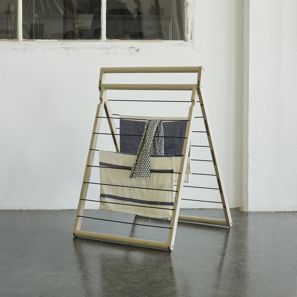 Who doesn't love the smell of fresh laundry? Perfect for homes with minimal space, the Dryp Drying Rack from the Skagerak Collection by Fritz Hansen is a space-saving solution for all drying needs. Crafted from oak wood with subtle rubber tips to prevent sliding, this drying rack can be used folded and free-standing or leaning up against a wall. For those clothes you simple cannot machine dry, the Dryp drying rack serves as your stylish and simple laundry solution.