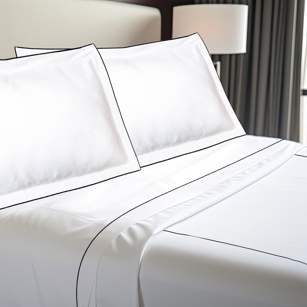 Indulge in understated luxury with the Dune Top Sheet from The Lino. Its contemporary finish features elegant contrast piping, inspired by the gentle curves of sand dunes. Made from 100% Egyptian cotton in a 400-thread count percale weave, it offers a crisp, breathable, and sumptuously soft feel for a sophisticated and relaxed atmosphere in any bedroom.