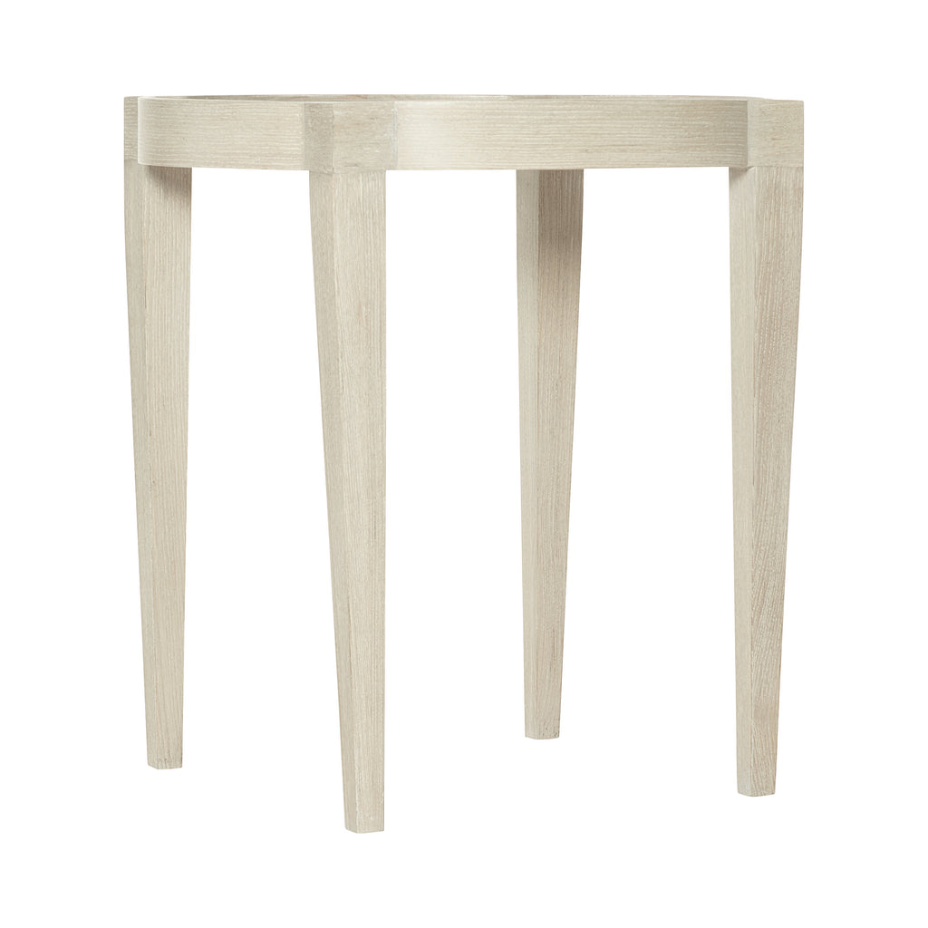The East Hampton collection is defined by its minimalist aesthetic, achieved through soft finishes, graceful curves and subtle accents. The East Hampton end table begins with a uniquely shaped top crafted from ash in a Cerused Linen finish. Four tapered legs complete the elegant design. Neither too formal nor too casual, this accent table offers stylish, effortless appeal.