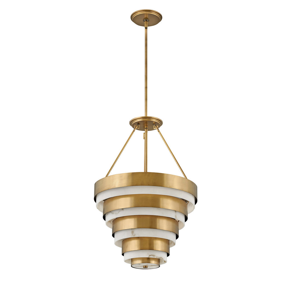 Breathing inspiration drawn from the classic style of Art Deco from the early 1900’s, Echelon from our Lisa McDennon Collection is a multi-tier chandelier featured in a gleaming Heritage Brass finish. Through her global travels, Lisa McDennon pulls captivating style and trends and incorporates them right into her designs.
