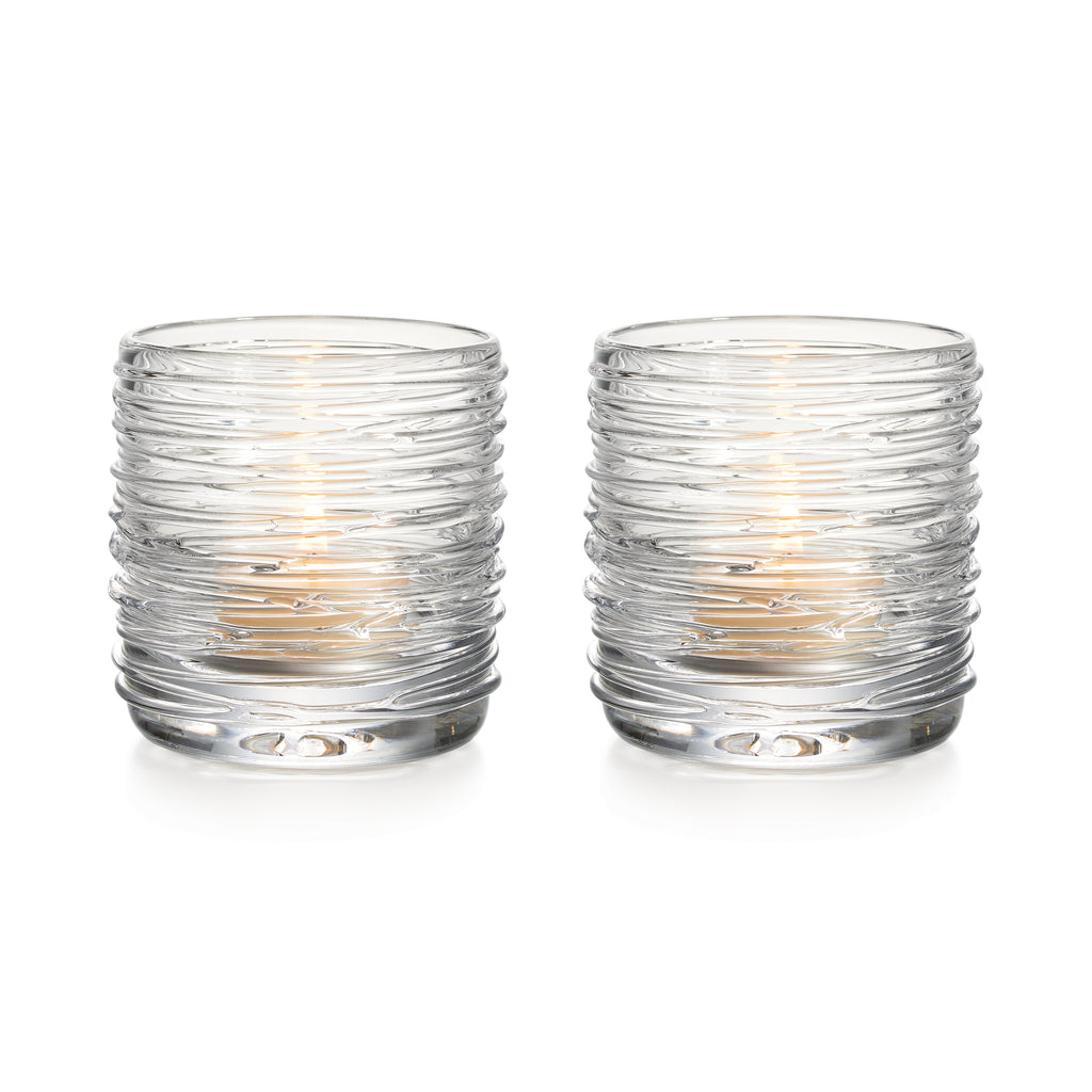 Elevate your home decor with the Echo Lake Tealight from Simon Pearce. Crafted by master glassblowers in Vermont, each candle holder features a unique, natural silhouette formed by fine strands of glass wrapped around a round base. Inspired by the changing seasons, create a glowing cluster for a stunning display on your dining table, mantle, or coffee table.