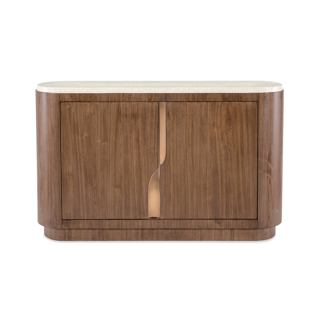 Designed for the sophisticated host, the Eleana Server from Hooker Furniture is a stunning statement in modern luxury. This beautiful server is crafted from rich walnut veneers and features a luxurious, honed marble top for a refined contrast of materials. Behind the two soft-close doors, two self-closing drawers and an adjustable shelf provide organized storage, complete with a drop-in silverware tray. A fusion of elegant materials and practical function, it’s the perfect companion for stylish entertaining.