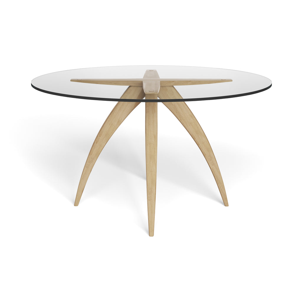 The Ella Round Dining Table from Saloom Furniture makes a beautiful statement in any modern dining space. A sculptural, solid wood base is complemented by a striking glass top, making for a timeless design that is eye-catching from every angle. Enjoy as a tasteful centerpiece for your dining room, or sleek set up for your eat-in kitchen.