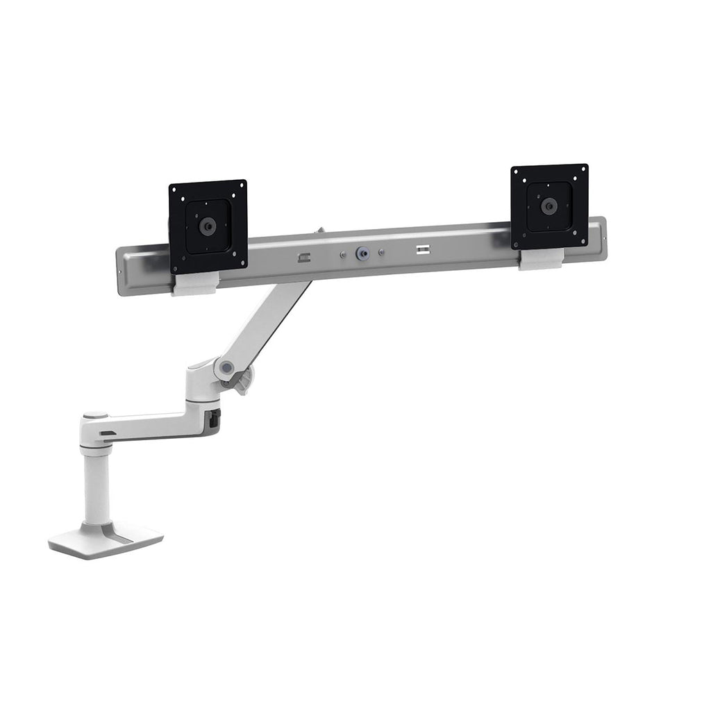 - Includes the LX monitor arm, extension, desk clamp mount, dual bow, two monitor pivots, pole, and mounting hardware
