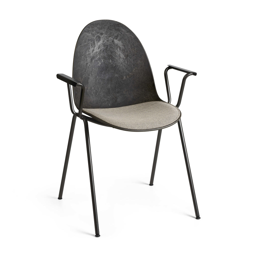 Upgrade your dining room seating with the Eternity Armchair with Upholstered Seat from Mater. Made with eco-friendly Matek®, this sculptural chair offers a comfortable steel armrest and multiple upholstery options to suit your space. Its durable design is perfect for any interior, making it a versatile choice for both private and public use.