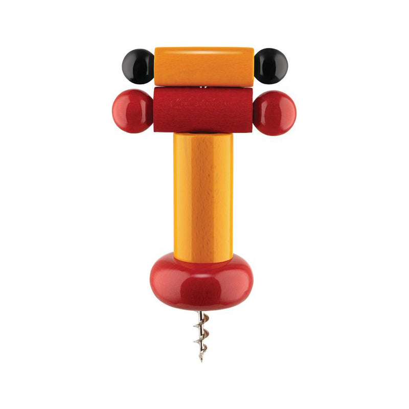 The corkscrew according to Ettore Sottsass: a tool both effective and emotional. Easy to use: the designed volumes reveal an ergonomic shape that is comfortable to hold. Made in Italy, near where Alessi is based, using a partly hand-crafted turning process with wood from sustainably managed forest. Colored with water-based and totally solvent-free paints that are sustainable for the environment and not harmful to human health.