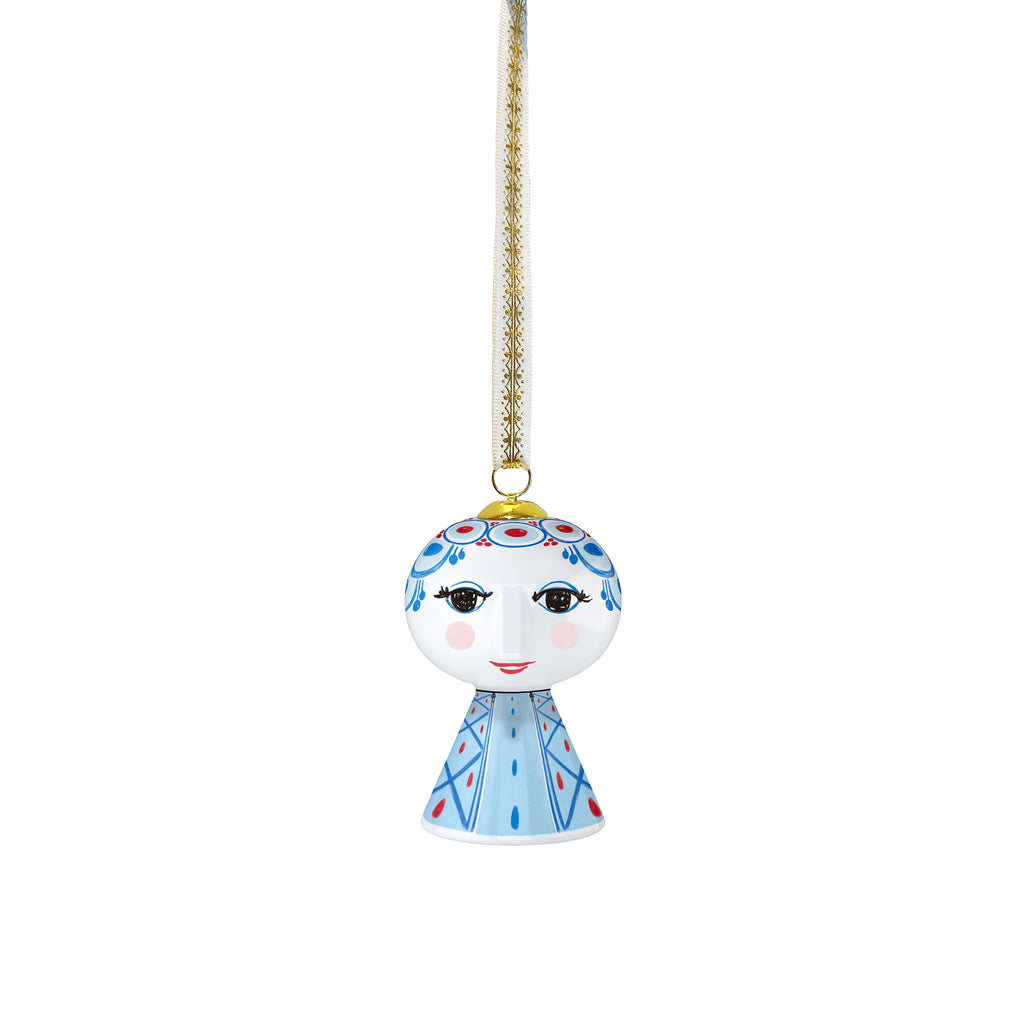 Inspired by the whimsical world of the artist himself, the Eva Christmas Ornament from Bjorn Wiinblad brings joy and creativity to your home. This charming porcelain ornament is a modern interpretation of Wiinblad’s archival illustrations, defined by its cone-shaped body and a beautifully detailed dress. With her almond-shaped eyes and joyful smile, Eva captures the poetic and playful spirit of Wiinblad's work. A fusion of classic Danish design and festive cheer, it’s a perfect gift or a treasured keepsake for years to come.