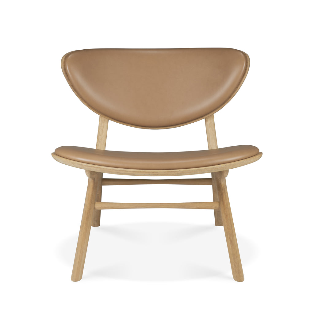 A hallmark of modern seating design, the Eye Lounge Chair from Ethnicraft is a study in subtle elegance with a stylish edge. This beautiful chair is defined by its unique, curved backrest, which is reminiscent of a winked eye and inspired the chair's name. Crafted from solid oak, the design features sleek, angular front legs that flow into smooth, graceful connections. Upholstered in a rich and supple Sienna leather, it’s a sophisticated and comfortable statement piece for any contemporary living space.