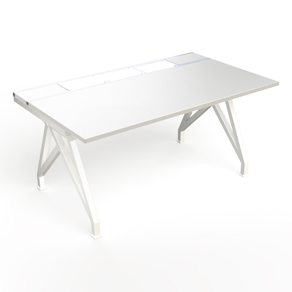 - Single Workstation; 1 Desktop. 1 Center Module with aluminum rails and 2 white powder coated steel access panels; 1 Frame, 2 Legs and 1 Wire Management Cable Tray under desk