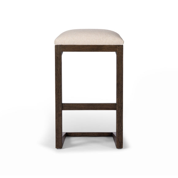 The Finn Stool from Four Hands is a stunning and sturdy addition to any space. Crafted from solid oak and iron, it offers both support and visual interest for contemporary, traditional, and even Farmhouse-inspired spaces . The upholstered seat is made of a durable fabric, offering long-term comfort and resistance to spills and stains, perfect for every day use.