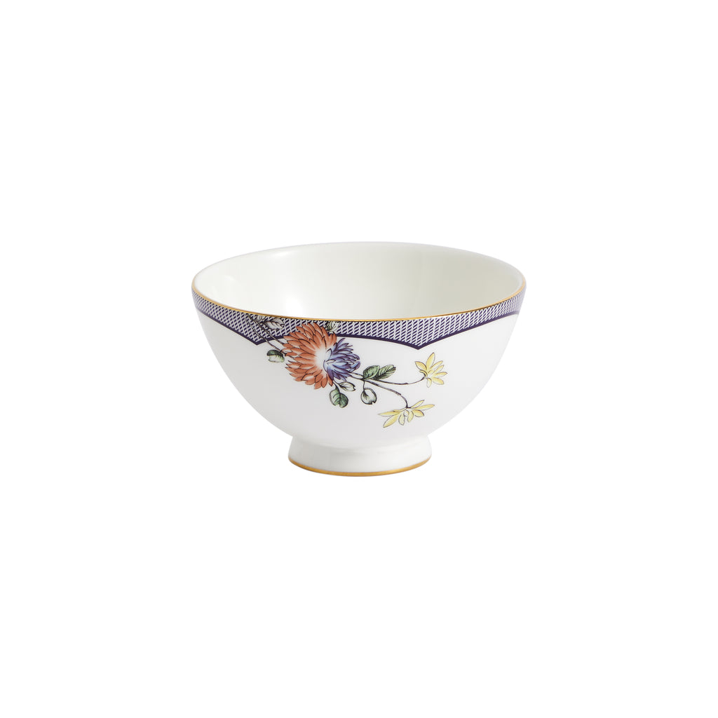 Take a trip to far-off places with the dreamy Fortune Bowl from Wedgwood. Adorned with vibrant flowers and delicate stems, this bowl brings the beauty of nature to your fine tablescape. The luxurious rim, adorned in regal purple and blue with a 22-carat gold band, adds a touch of opulence to your dining experience.