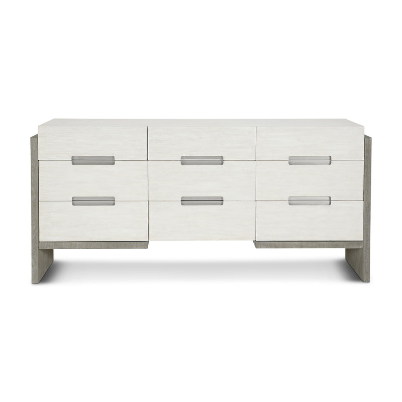 Fall in love with the minimalistic yet stylish Foundations Dresser from Bernhardt. Made from weathered acacia, its elegant design and refined expression make it perfect for a laid-back or elevated bedroom. The nine drawers are adorned with brushed stainless steel pulls and framed by a contrasting wooden frame, ready to hold your essentials with ease.