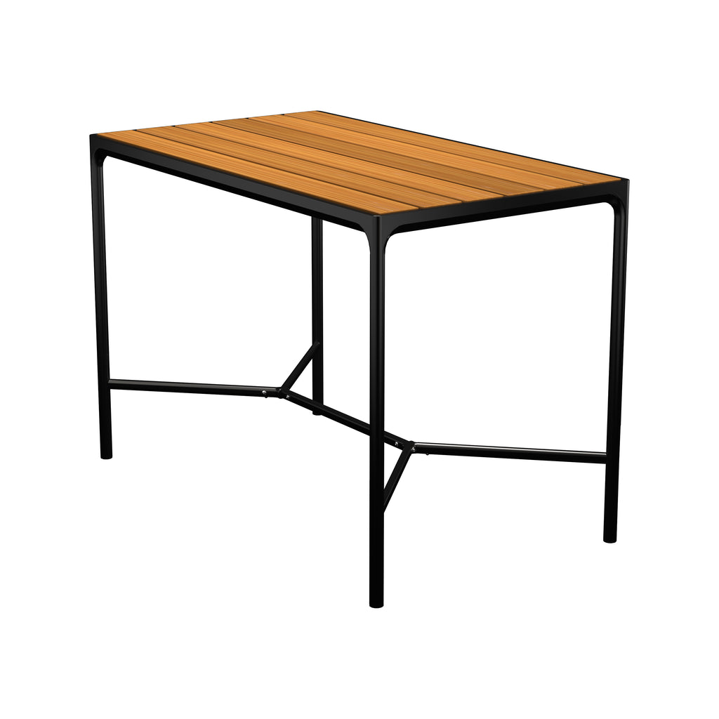 Remarkably strong and durable, the Four Outdoor Bar Table from HOUE provides a sturdy surface for entertaining or enjoying drinks al fresco. A simple black aluminum frame is accented by sleek metal or the warmth of sustainable bamboo for a modern take on the traditional slatted design. Perfect for bar-height seating, this table creates an elevated dining space for poolside patios, rooftop decks, and more.