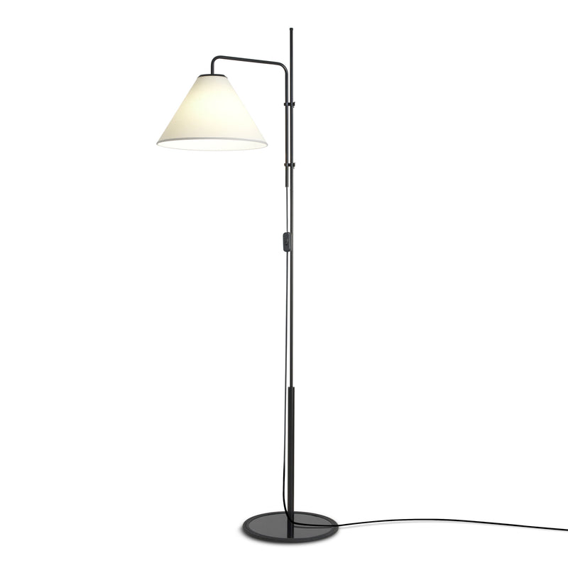 Elevate your space with the Funiculi LED Floor Lamp from Marset. This chic rendition of the classic 1979 design boasts a wider base and tapered shade for improved stability and illumination. Made of lacquered iron and featuring an adjustable height for optimal lighting, it's perfect for modern offices or cozy reading nooks. Plus, the large rubber base ensures it won't scratch or slide on flooring.
